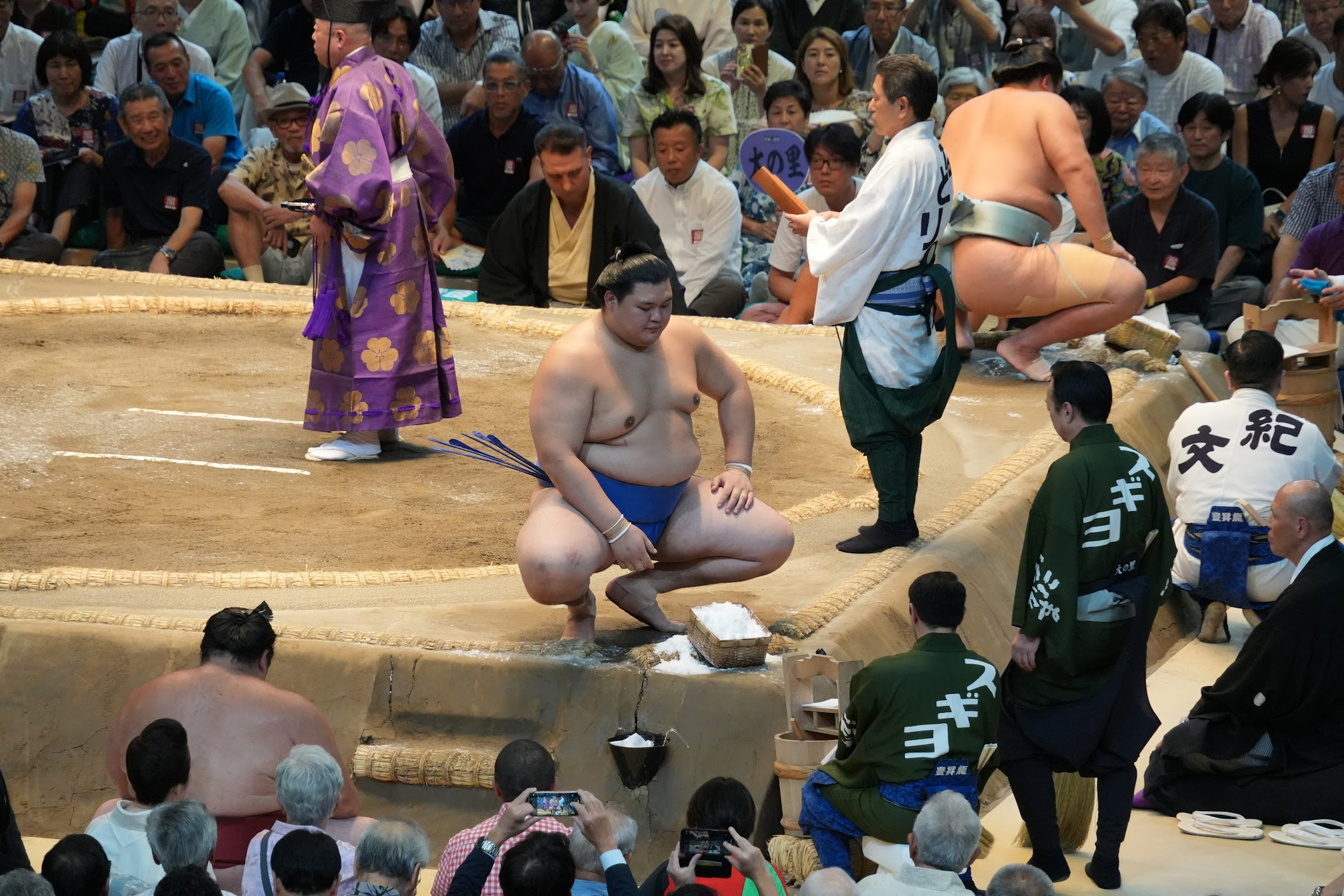 We had a great time at de Grand Sumo Tournament in Tokyo. We missed out on tickets through the official ticket sales so we went for the guided experience and didn't regret it for a minute. After a short introduction to Sumo wrestling we went to the arena. In time for the introduction of the second highest ranked Sumo wrestlers. The seats had a good view of the doyho. Although we did prepare for our first Sumo tournament it was a great added bonus to have a enthousiastic guide with great knowledge of the (history of the) sport, the wrestlers and the fans.